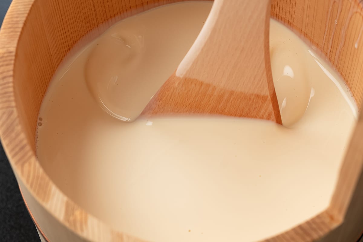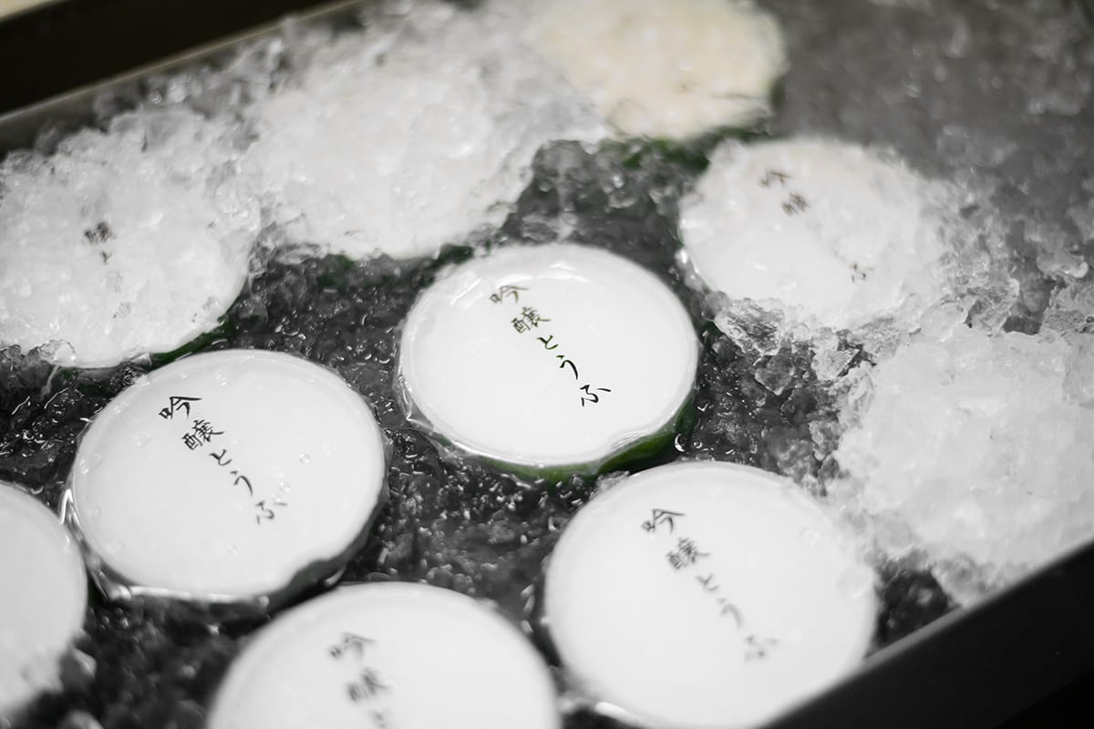 「吟醸とうふ」には山形県産大豆「さとういらず」を単体で使用。砂糖がいらないほどの甘みと旨みを持ちながらも扱いが難しい大豆ですが、熟練の技で魅力を最大限に引き出しました。濃厚で甘みの強い味わいは、まさに“ 吟醸”の名にふさわしい一品です。