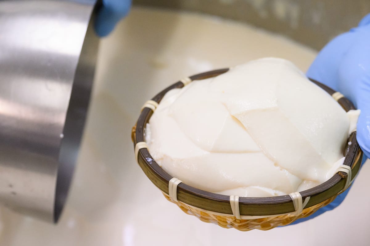 「くみあげとうふ」は、寄せたてのとうふを職人が絶妙な加減でざるに汲み上げたもの。ざるを通して適度に水分を抜くことで、大豆の風味が一層際立ちます。