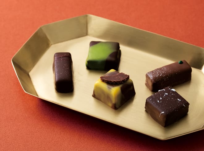 ジャスミン香るキャラメルショコラを、ダークチョコでコーティング。ビターなコクとキャラメルの甘さに、華やかな香りがふわりと重なる上品な味わいです。
